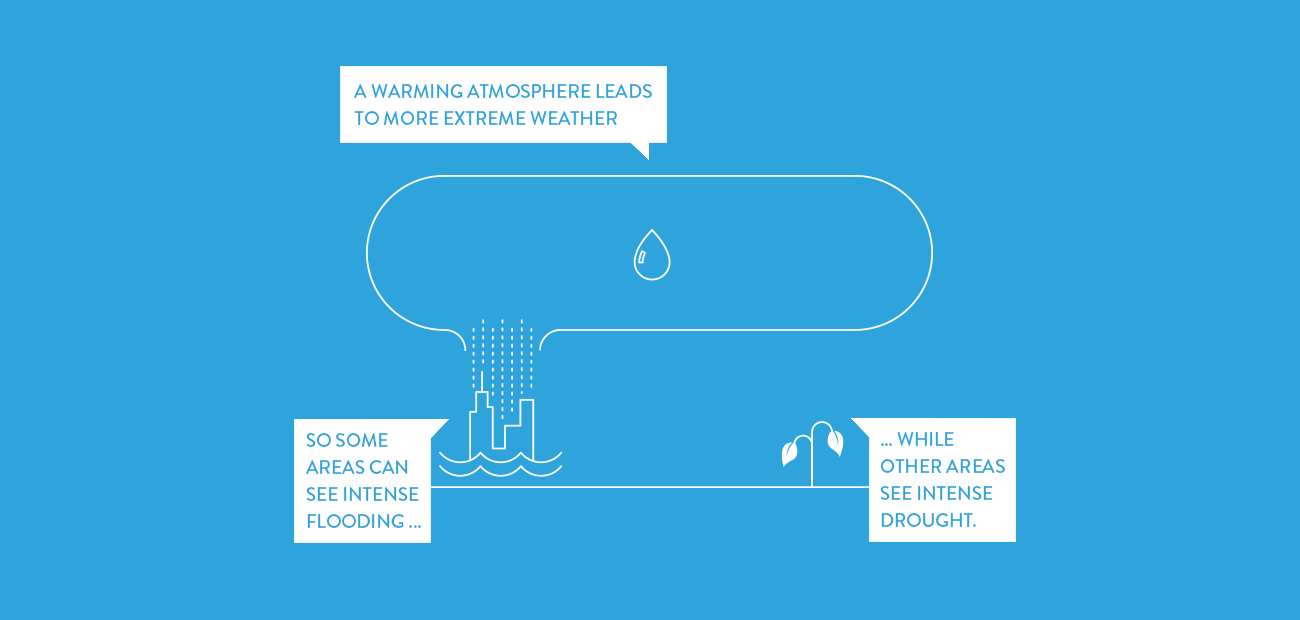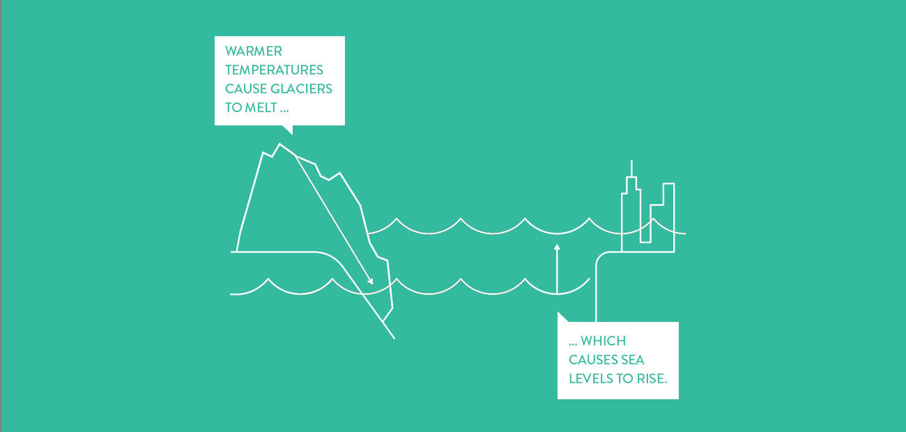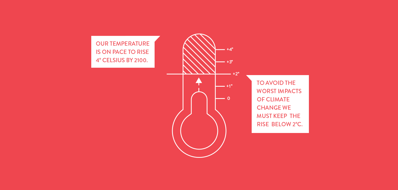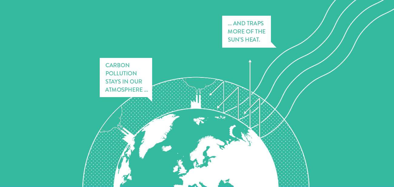 It’s simple: the more carbon pollution in the air, the more the sun’s energy gets trapped as heat. Which means things keep getting hotter. You’ve almost certainly heard the phrase “global warming”? In fact, the world has already gotten nearly 1°C warmer since 1880.